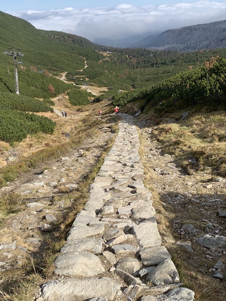 Zakopane is a ski resort, but it’s also blessed with a grid of stone-paved valley trails leading south into the Tatras, crossed horizontally by other paved tracks. And at the top of all this is the ridge separating Poland from Slovakia.